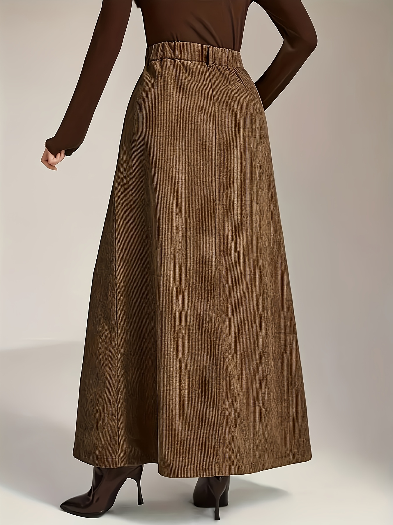 High – waisted retro corduroy A – line skirt with pockets for women, straight – tube style, suitable for commuting in autumn and winter, a versatile mid – length skirt