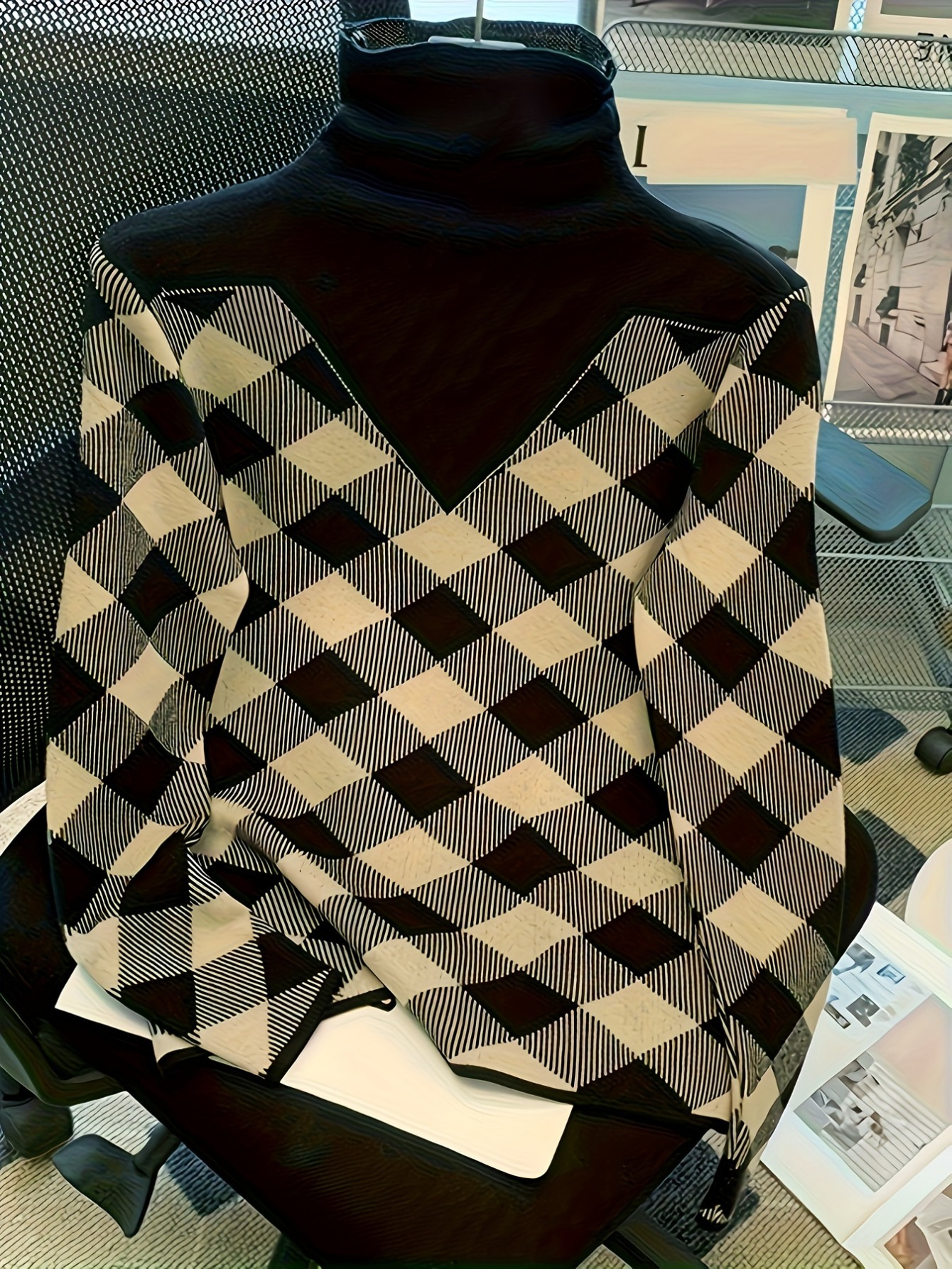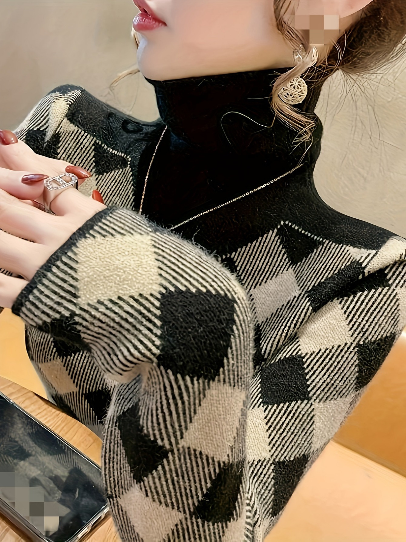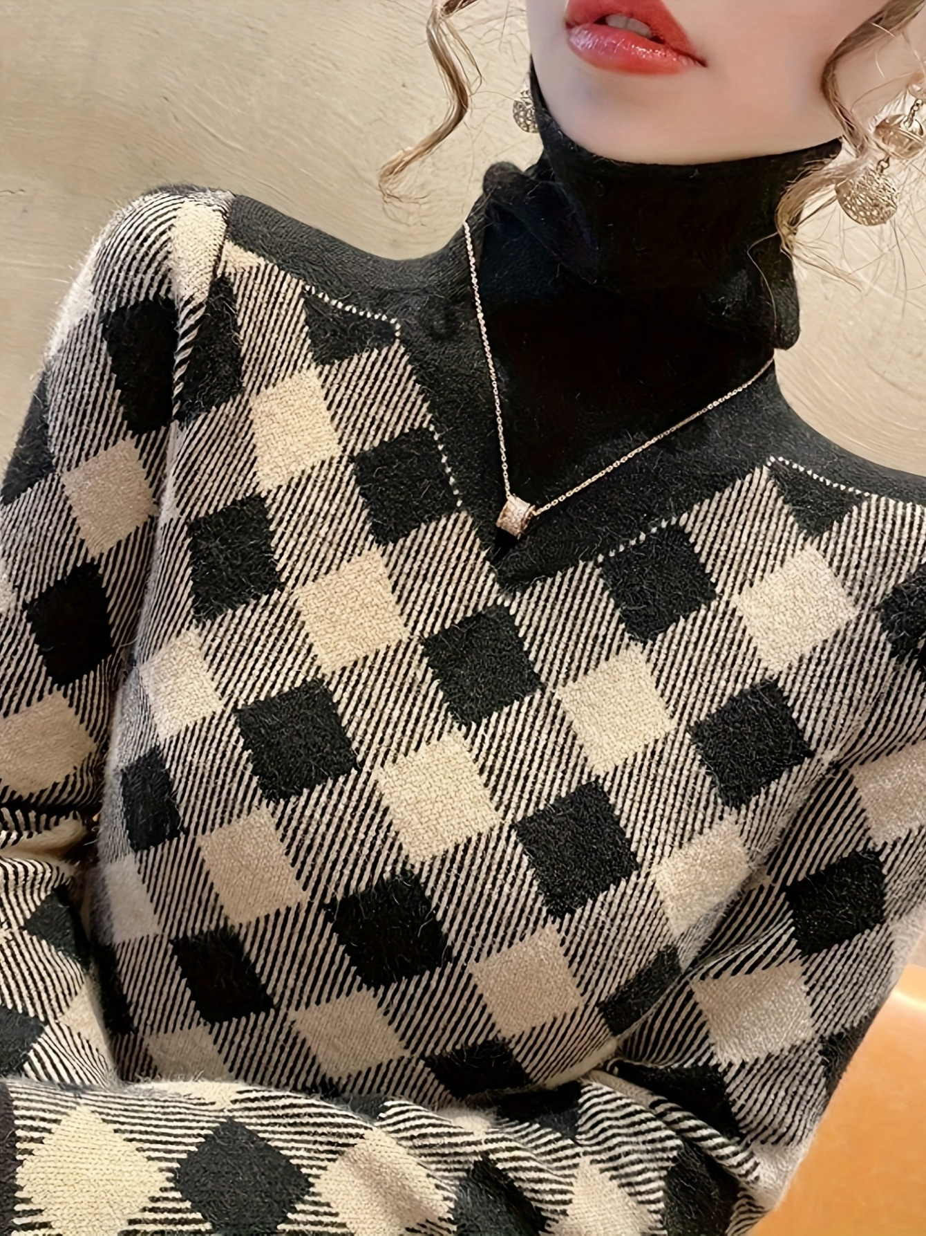 Ladies’ Elegant Black Rice Herringbone Pullover – Turtleneck Sweater for Autumn and Winter. Suitable for office, parties, and daily wear. It’s a machine – washable and stylish knitted sweater, a must – have item in winter. With stretchy fabric and durable material.,